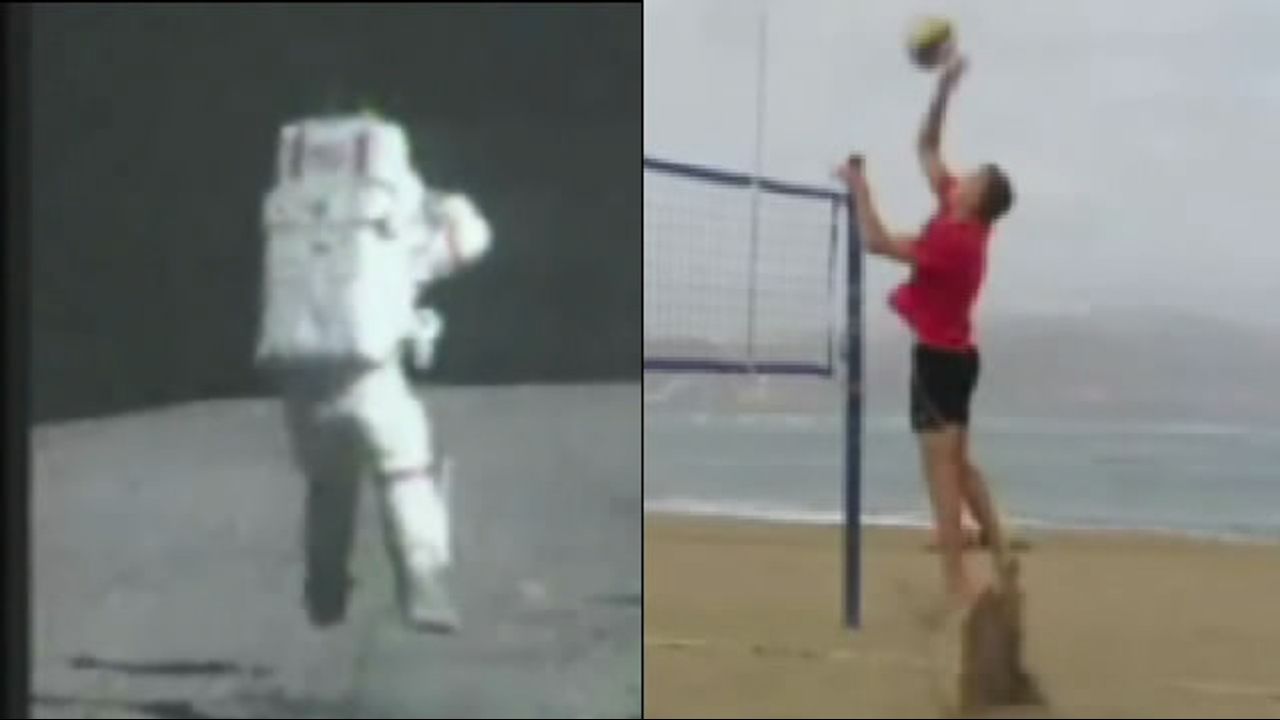 Compare the behavior of the soil in the Apollo footage to that of the sand in the beach footage.